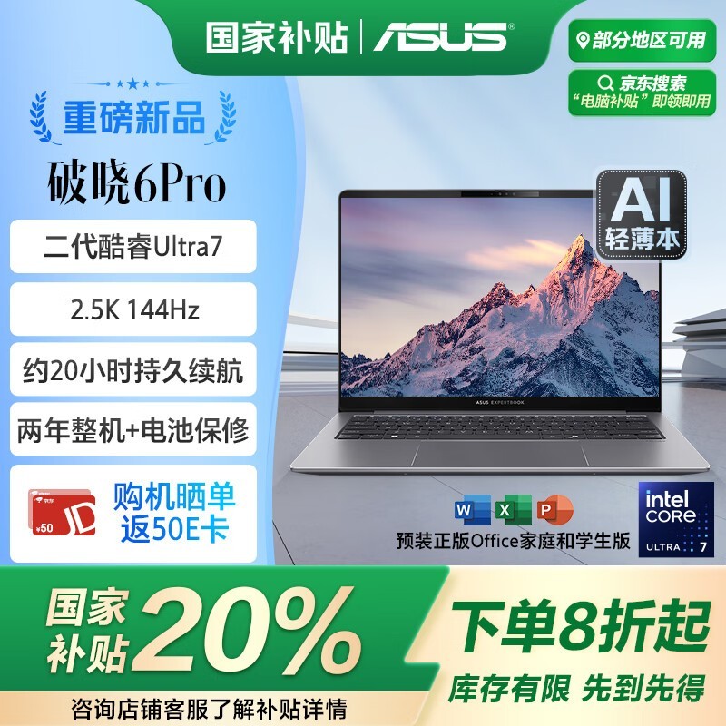 华硕ASUS破晓6Pro商务轻薄本笔记本电脑仅6029元