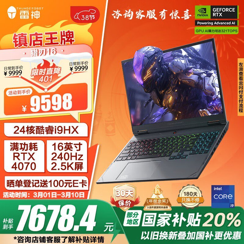 雷神猎刃16游戏本i9-14900HX/RTX4070京东好价7632元