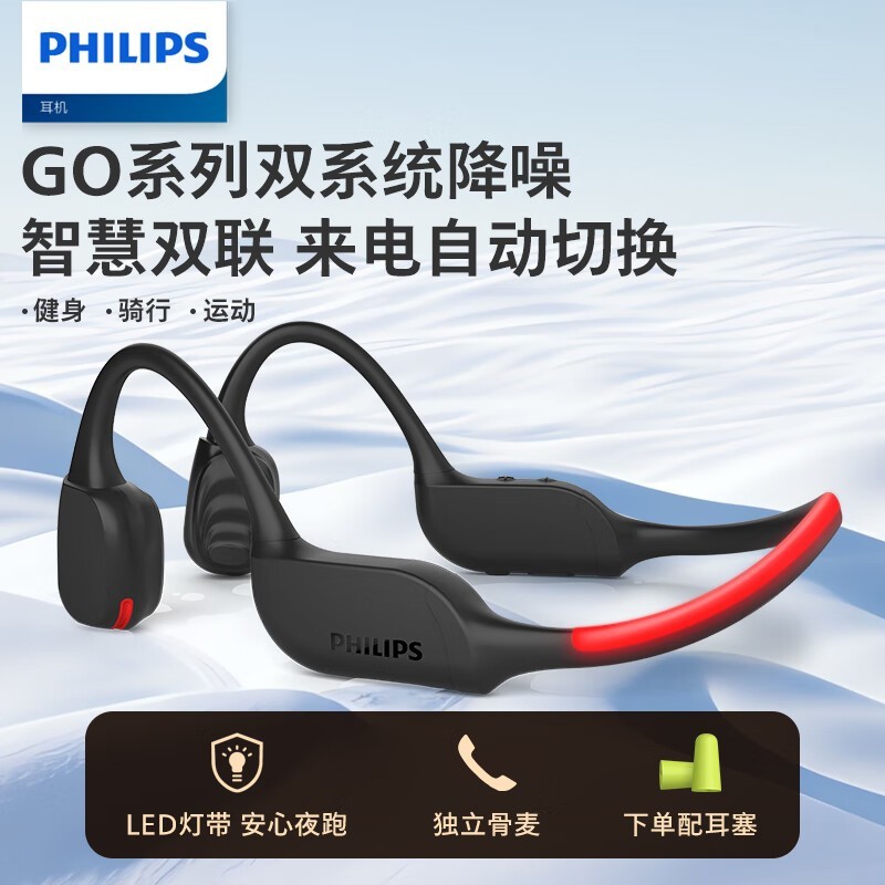 飞利浦TAA7607骨传导蓝牙耳机黑色运动挂耳式