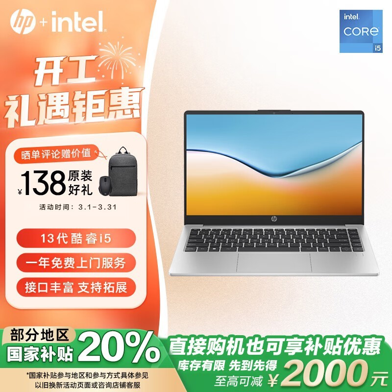 惠普锐14酷睿版轻薄本,13代i5处理器,16G内存,活动价2705元
