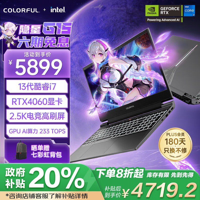 七彩虹隐星G15 2024游戏本 i7-13620H RTX4060京东好价