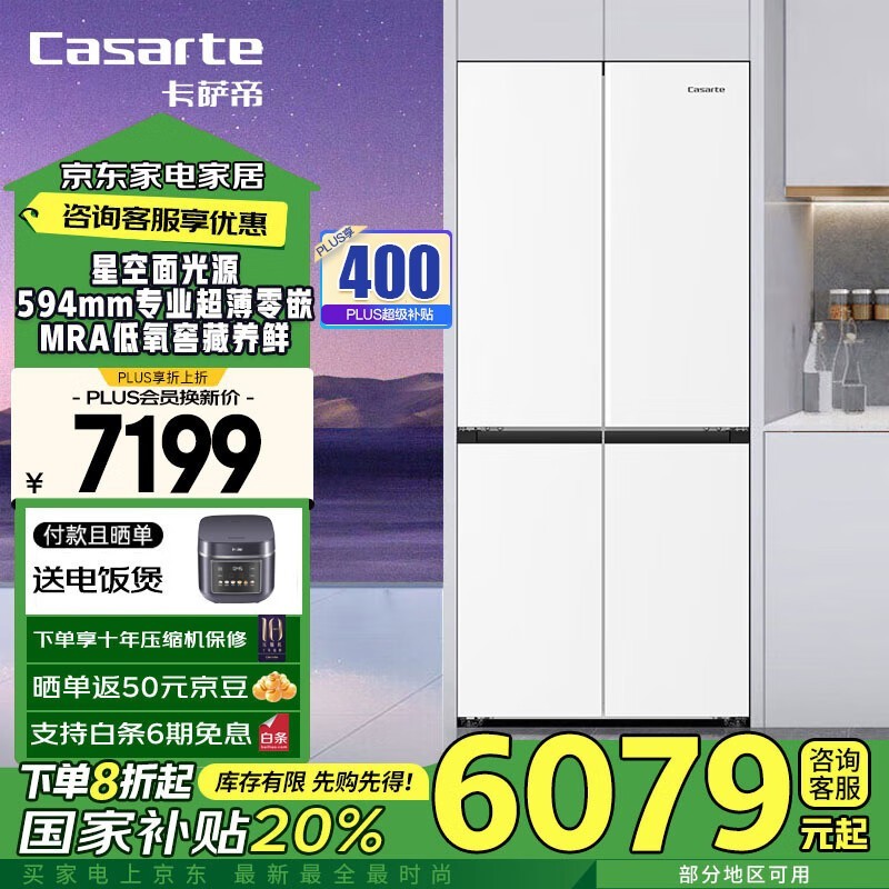 卡萨帝477L十字门冰箱薄零嵌星空系列促销中