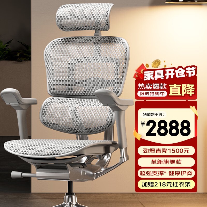 保友金豪E2代人体工学椅银白色Q4.0版限时优惠