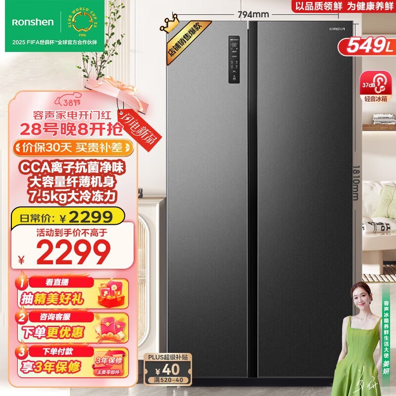 容声549升对开门冰箱低至1479元包邮