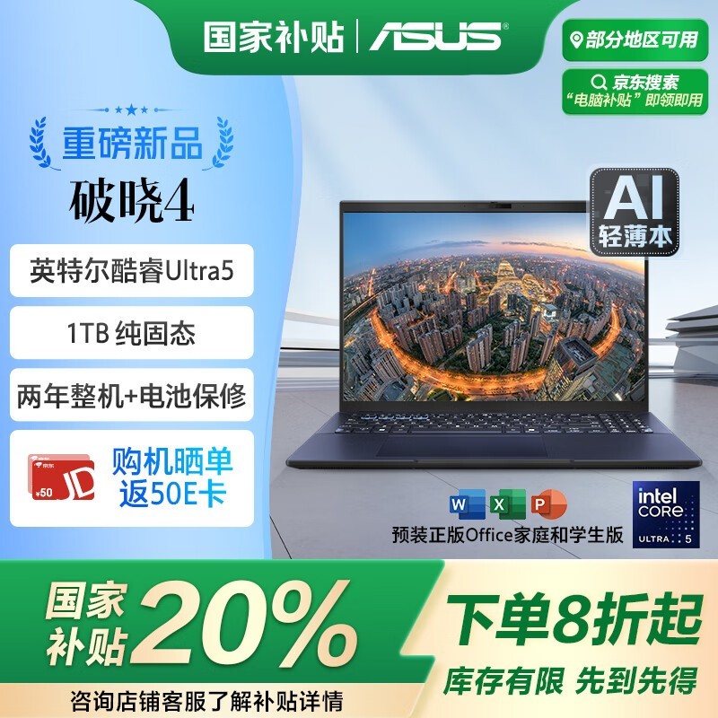 华硕破晓4轻薄本AI办公神器促销价3549元