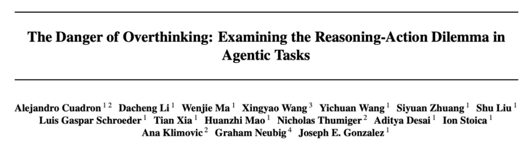 近日,加州大学伯克利分校、UIUC、ETH Zurich、CMU 等机构的研究者观察到了这一现象,他们分析了 LRM 在执行智能体任务过程中存在的推理 - 行动困境,并着重强调了过度思考的危险。