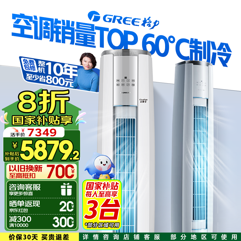 格力云锦三代3匹立式空调柜机清凉促销到手仅5635元