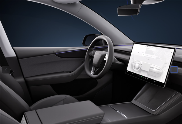 内饰方面,新款Model Y基本沿用了新款Model 3的布局,保留转向拨杆并对方向盘多功能按键进行重新布局。