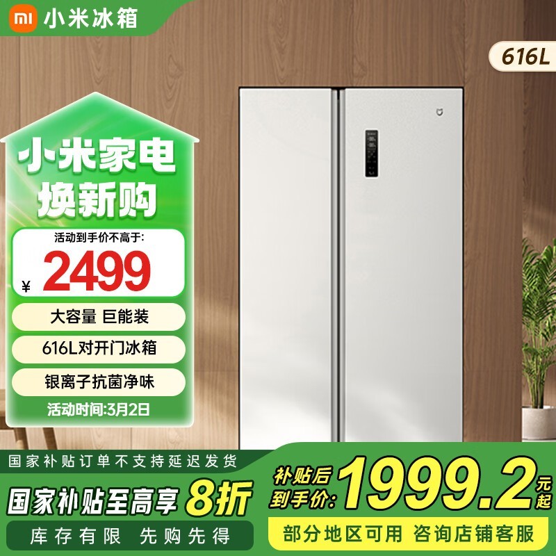 米家616升对开门冰箱大容量家用双开门风冷无霜