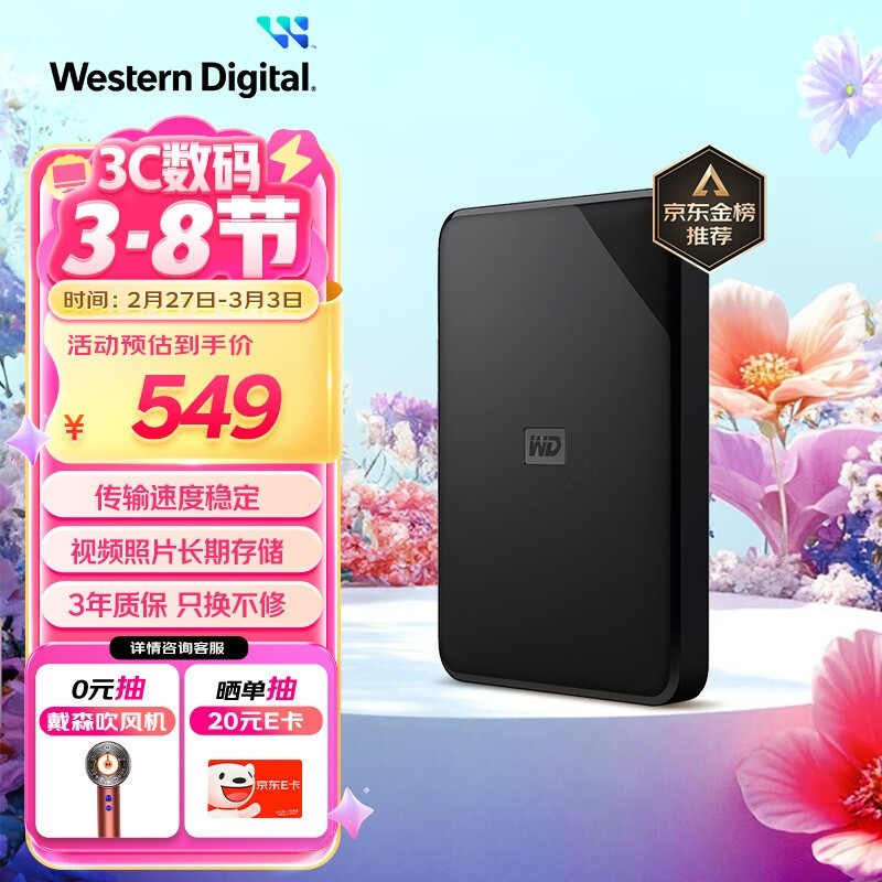 西部数据Elements SE 2TB移动硬盘USB3.0接口仅539元包邮