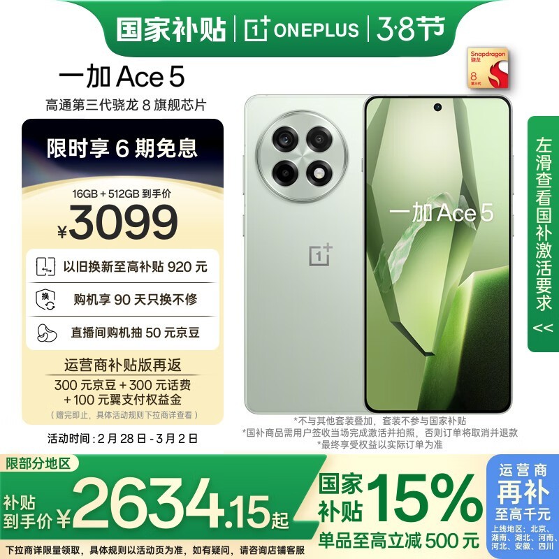 一加Ace5天青瓷陶瓷特别版16+512GB仅2583元