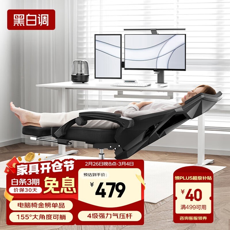 黑白调P4 Pro人体工学电脑椅耀黑款京东促销仅439元