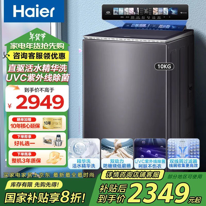 海尔小红花系列波轮直驱变频洗衣机:9公斤大容量,智能除菌,轻松洗衣生活助手