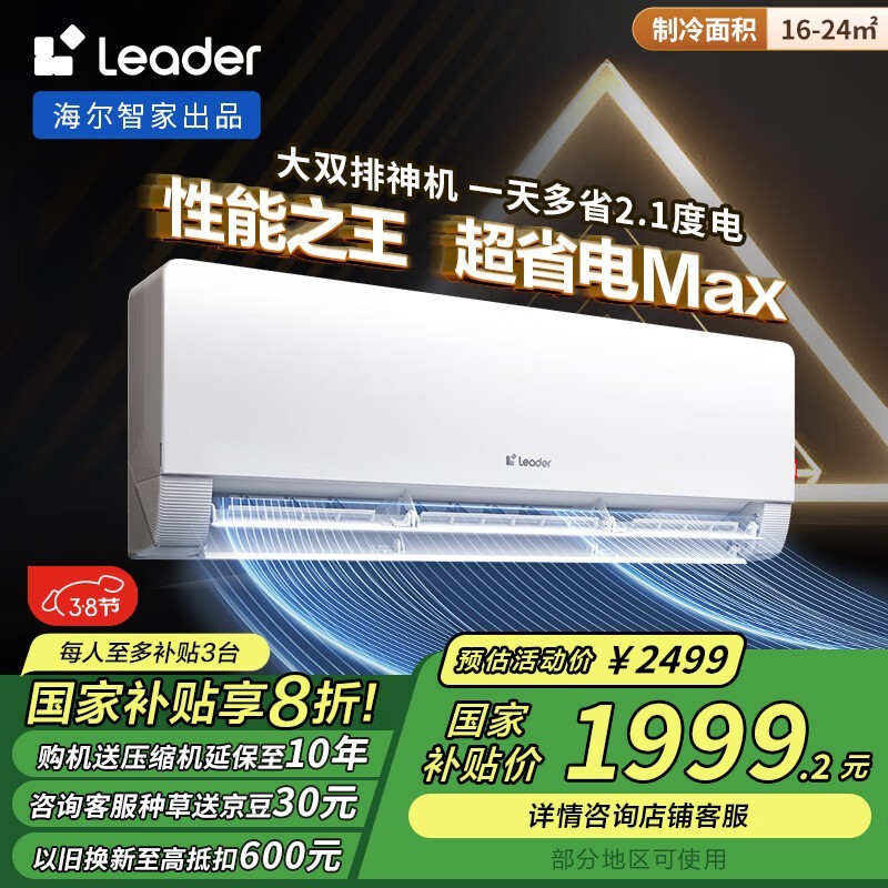 Leader超省电Max系列壁挂式空调1匹新一级能效仅1991元