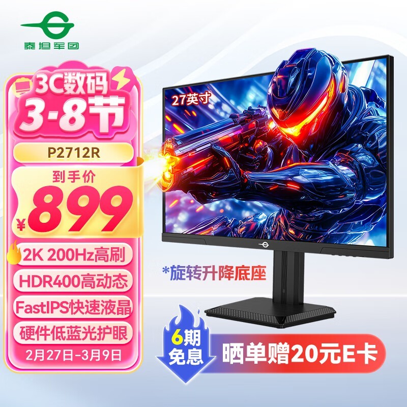 泰坦军团P2712R电竞显示器满血小金刚2K200Hz仅899