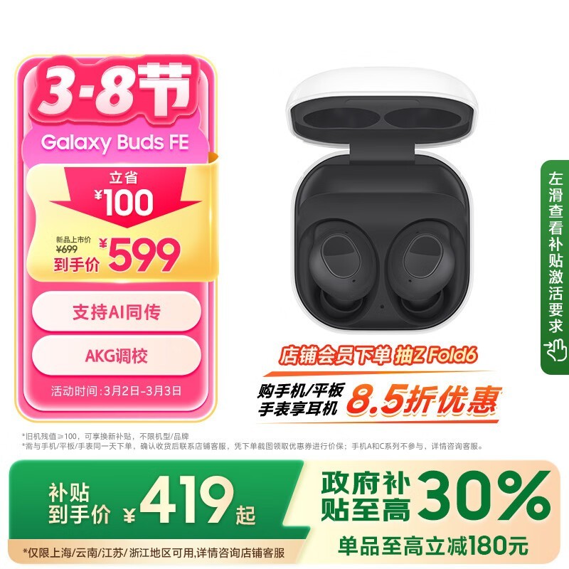 三星Galaxy Buds FE真无线降噪耳机京东优惠低至382元