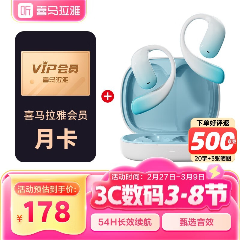 金运蓝牙耳机Sky5骨传导运动款送喜马VIP会员