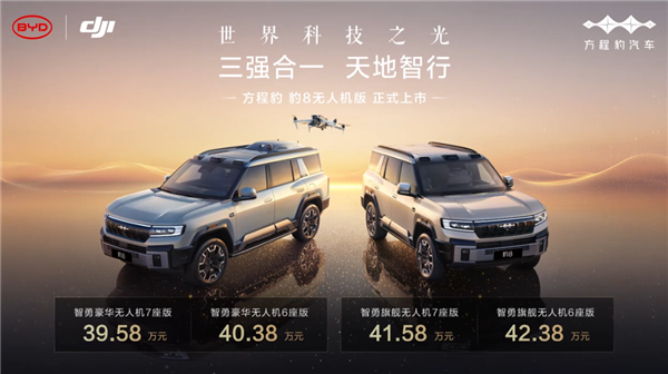 其中,豹8的“灵鸢”选装价位16000元,搭载“灵鸢”的方程豹豹8售价区间为39.58万元-42.38万元。