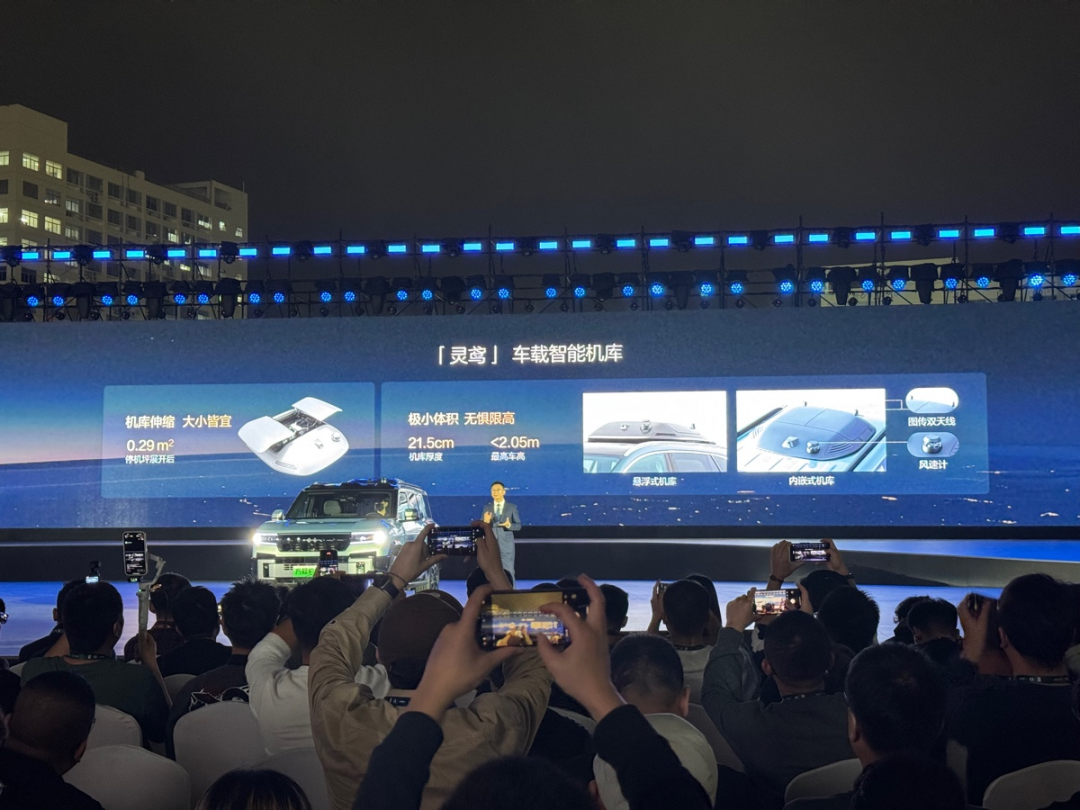本次首发的“灵鸢”快充版智能机库集成车规级风速计、车载无人机定位模块、图传天线、车顶摄像头及智能温控系统,具备动态起降、精准降落、智能充电和温控等功能。