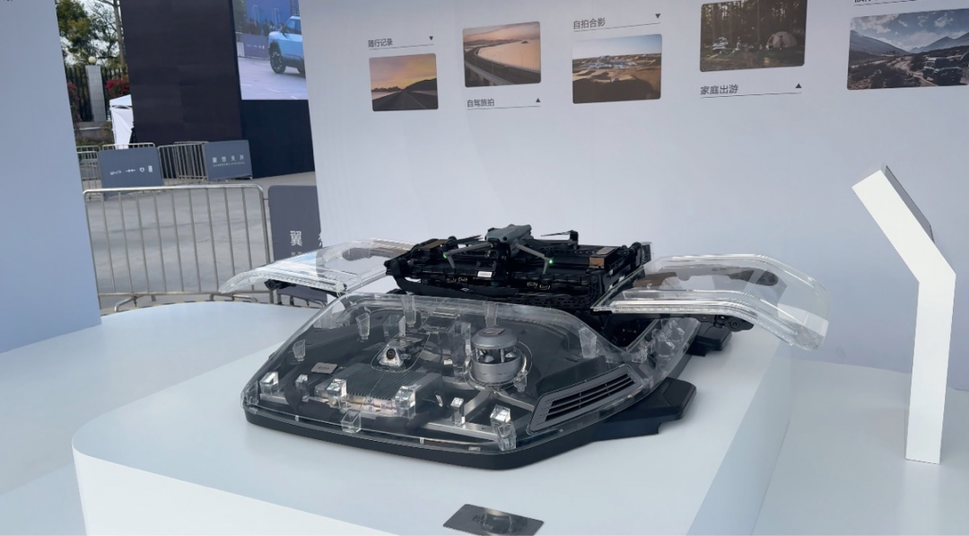 “灵鸢”运用了全球首创的车载伸缩停机坪方案,融合了车载无人机定位模块、4K高清车顶摄像头、定制双模式手柄等多个硬件,不仅能实现动态起降、一键返舱、随动跟拍,还能实现收纳快充。30套拍摄模板及智能算法,让用户无需过多操作,即可一键成片。