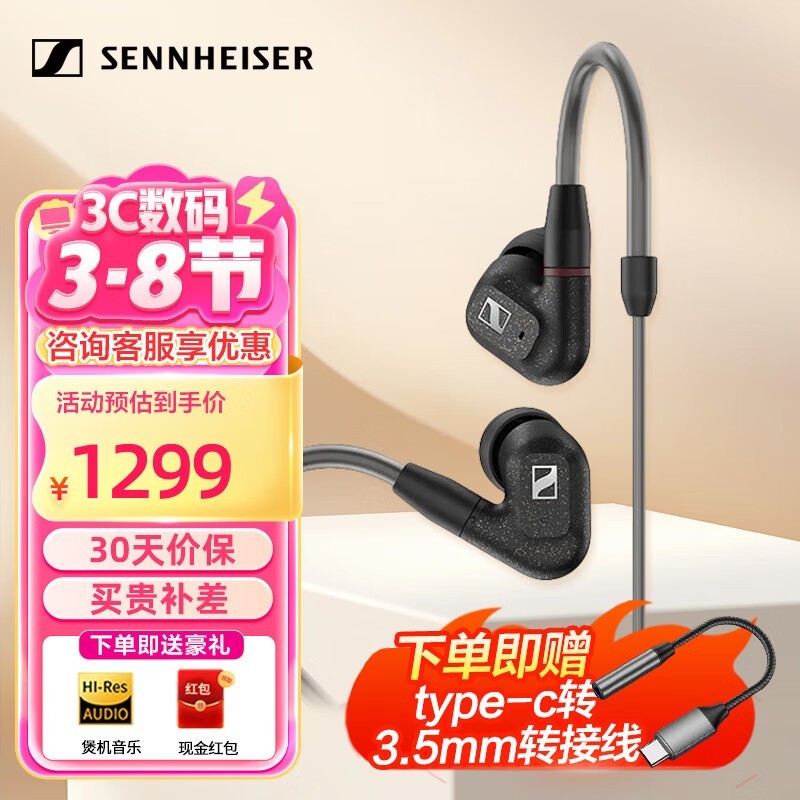 森海塞尔IE300入耳式动圈耳机京东特惠仅1299元