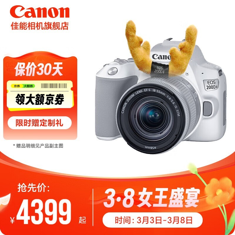 佳能200D二代白色单反相机促销仅5299元
