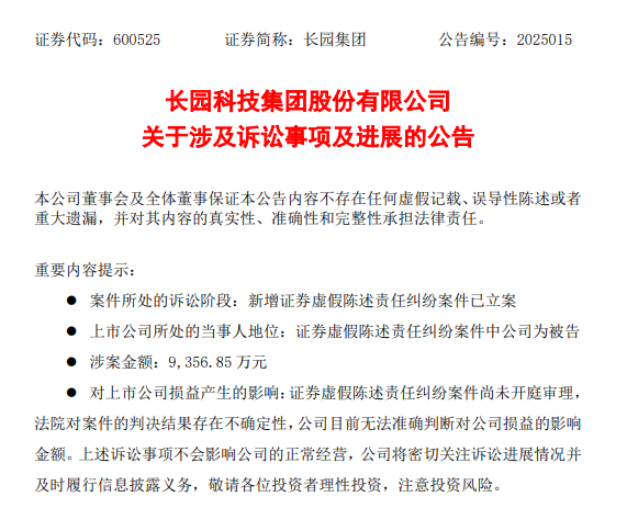 红星资本局3月2日消息,长园集团(600525.SH)3月1日公告,公司近日收到法院送达的证券虚假陈述责任纠纷案件材料。熊贤忠等3名投资者起诉长园集团,请求法院判令该公司赔偿合计9356.85万元损失。