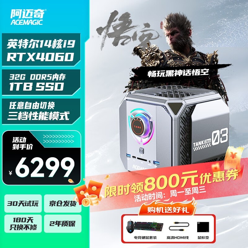 阿迈奇M1A迷你主机i9-14核+RTX4060京东特惠至6299元