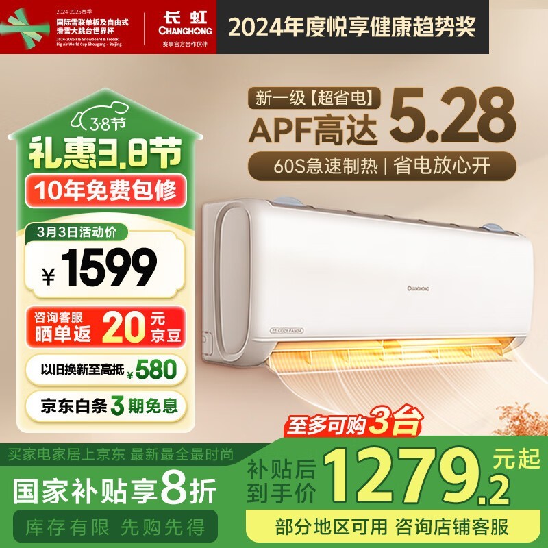 长虹1匹一级能效空调京东活动价1599元享多重优惠