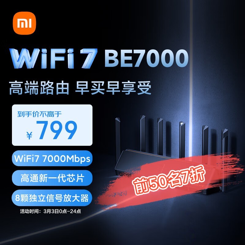 小米Xiaomi BE7000三频千兆Mesh路由器促销中