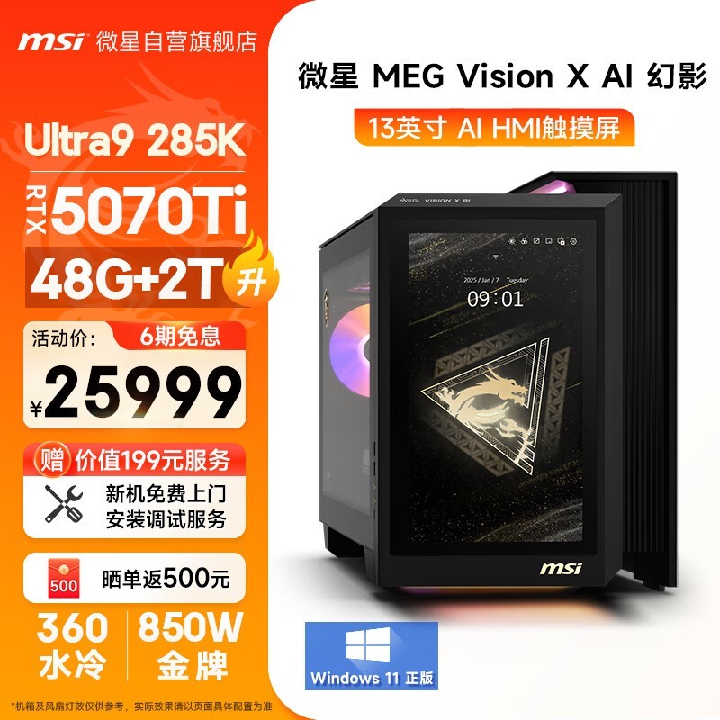 微星Vision幻影X Ultra U9设计师台式机黑神话悟空联名款特惠至25499