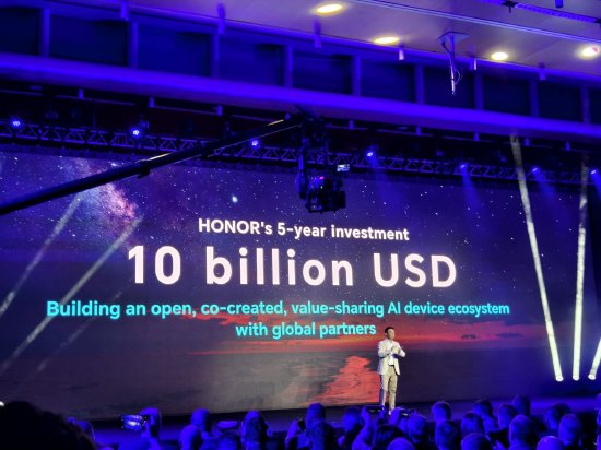 发布会上,荣耀发布了阿尔法战略。荣耀CEO李健宣布,未来5年,荣耀将投入100亿美元建设AI设备生态。