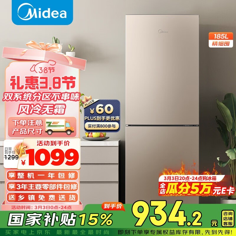 美的BCD-185WM(E)风冷无霜双门冰箱促销优惠