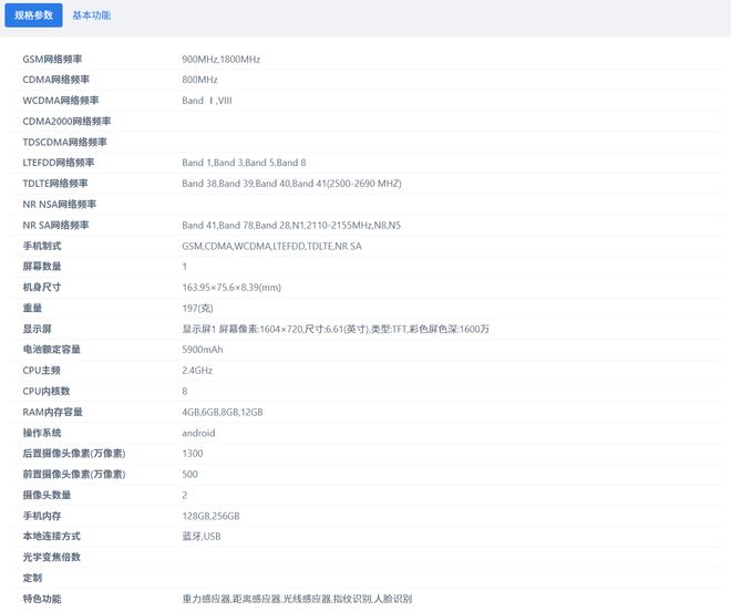 新机将提供 4GB、6GB、8GB、12GB 内存容量以及 128GB、256GB 存储空间可选(具体规格以实际上是为准),预装安卓系统(具体版本未公布),后置 1300 万像素镜头、前置 500 万像素镜头。