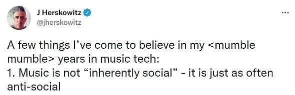 Spotify前产品经理J Herskowitz曾经有一个观点,音乐与社交在本质上存在某种对立。社交功能的引入不仅未能为音乐产品增色,反而让音乐的纯粹性受到前所未有的挑战。