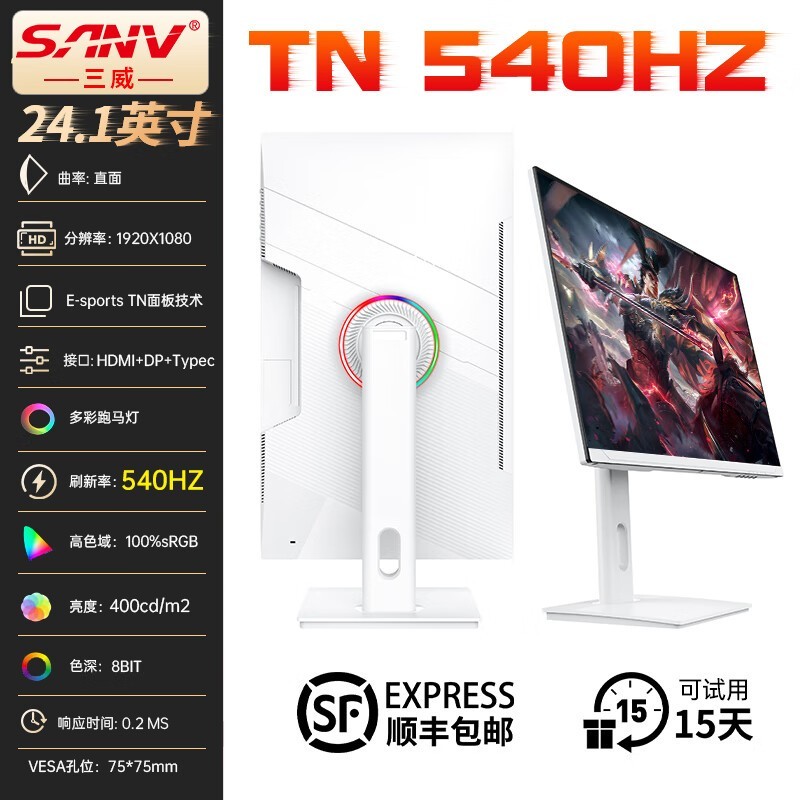 三威SANV桌威540HZ显示器400Hz刷新率仅2579元