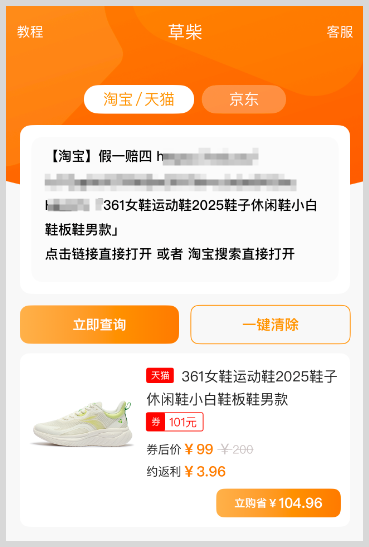 手机安装【 草柴 】App后,打开手机淘宝或天猫,挑选要购买的商品,点击分享复制链接到草柴,查询该商品优惠券和返利。领券后立即购买可享受券后价优惠,确认收货后可获得返利。