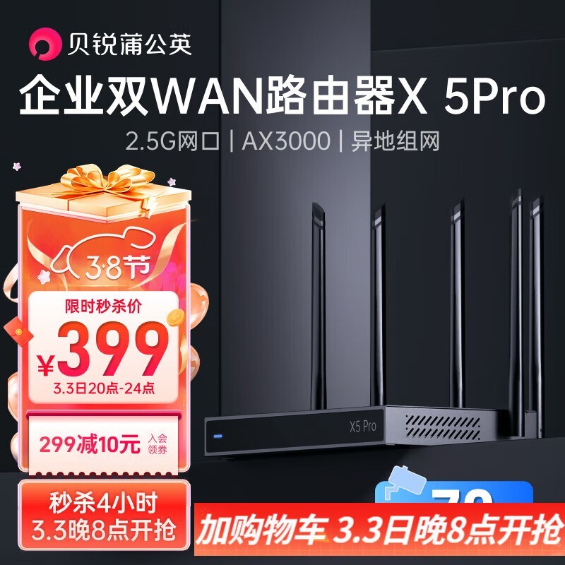 蒲公英路由器X5Pro京东限时秒杀399元到手