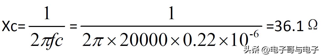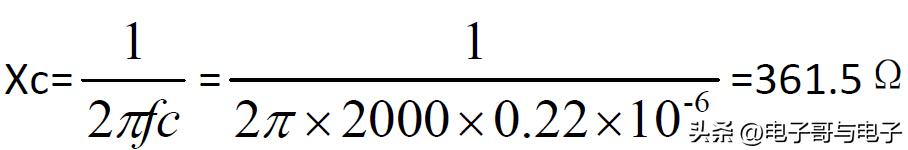 例如:一个频率为2Khz的信号,通过一个容值为0.22uf的电容,计算电容对该信号产生的阻抗。