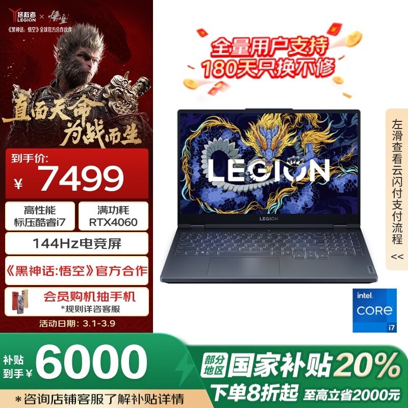 联想拯救者Y7000 2024款i7-13650HX RTX4060 8G京东特惠5999元