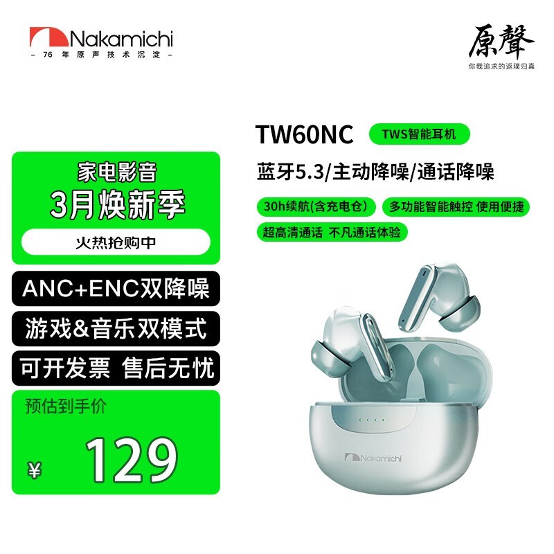 NAKAMICHI中道蓝牙耳机主动通话降噪防丢失功能入耳式耳机