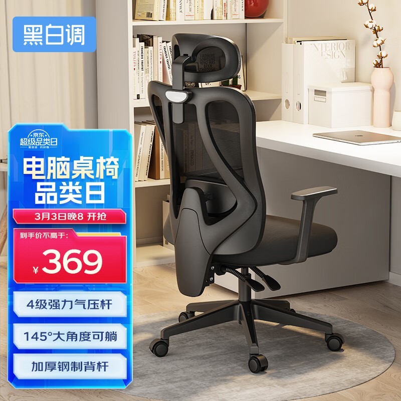 黑白调P1人体工学电脑椅京东促销仅325元