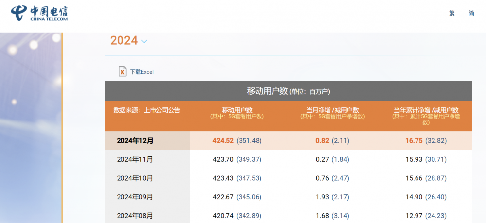 据工信部披露数据显示,截至2024年底,全国移动电话用户总数17.9亿户,普及率为127.1部/百人,市场早已饱和,传统用户增长不再反映真实竞争力,月度数据除了证明运营商的内卷式竞争的成果,已经意义不大。