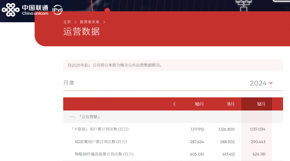 C114讯 3月3日消息(颜翊)2025年开始,三大运营商集体更改运营数据披露方式,从月度披露改为季度披露。