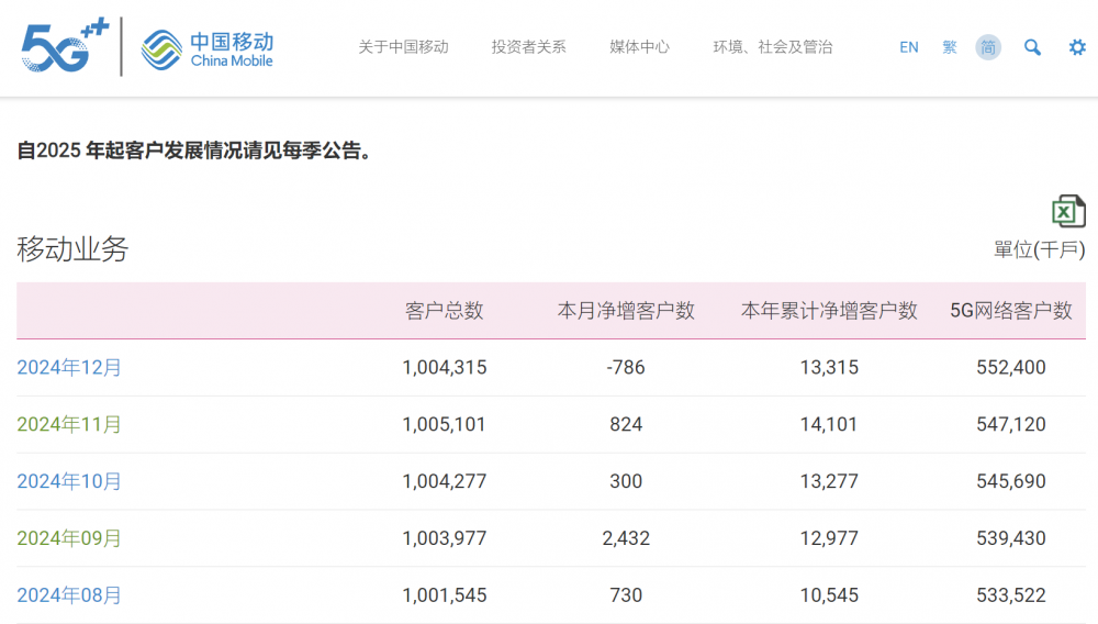 然而,2025年2月的披露时间到了,中国移动和中国联通却在官网留下一句:自2025年起,客户数据请见每季公告。中国电信同样未披露数据,但未留下只言片语。
