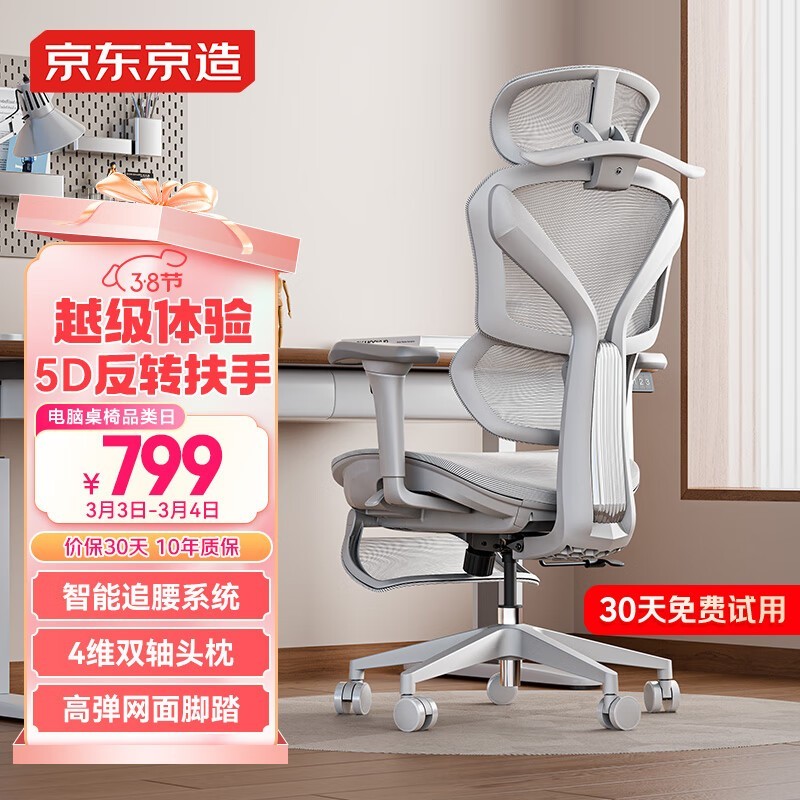 京东京造Z9Pro人体工学椅智能追腰4维头枕5D扶手