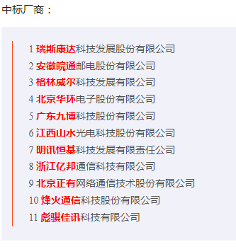 该项目投标的供应商不少,公告的就有5家厂商,然而这5家中竟然有三家都在初审中就被否决了,分别是安徽皖通邮电股份有限公司、江西山水光电科技股份有限公司和瑞斯康达科技发展股份有限公司。