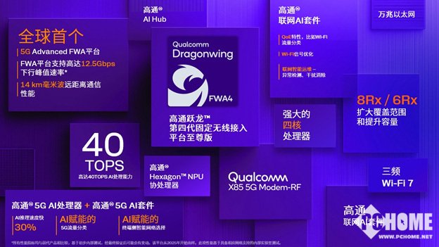 除此之外,高通X85还会在固定无线接入(FWA)中发挥巨大作用。在MWC首日中,高通也推出了高通跃龙第四代固定无线接入平台至尊版,为FWA性能设立全新标杆。该平台搭载了高通X85 5G调制解调器及射频,它是全球首款5G Advanced FWA平台,提供最先进的远程通信功能,包括支持长达14公里的毫米波远程通信,从而兼顾了网络速度和网络覆盖范围。