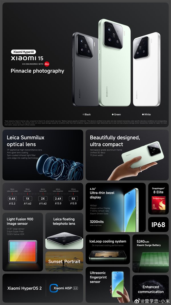 小米15海外版与国内版的配置基本保持同步,但电池有所缩减,仅5240mAh,而国内版本则是5400mAh,均支持90W有线快充与50W无线快充。