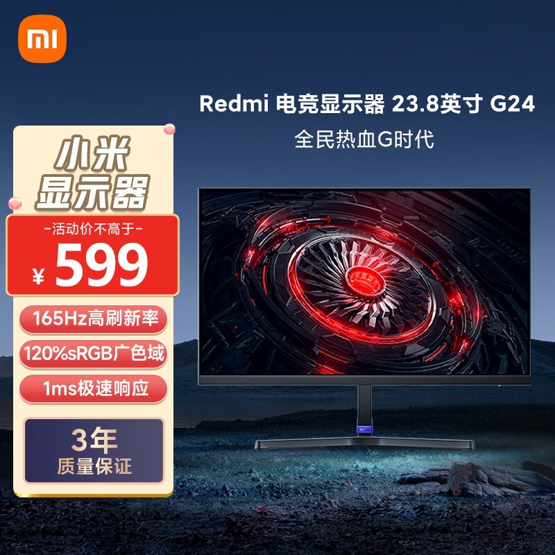 红米G24显示器165Hz高刷 HDR10 472元到手